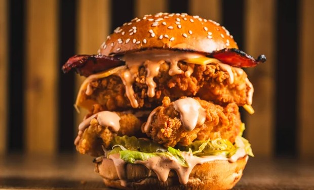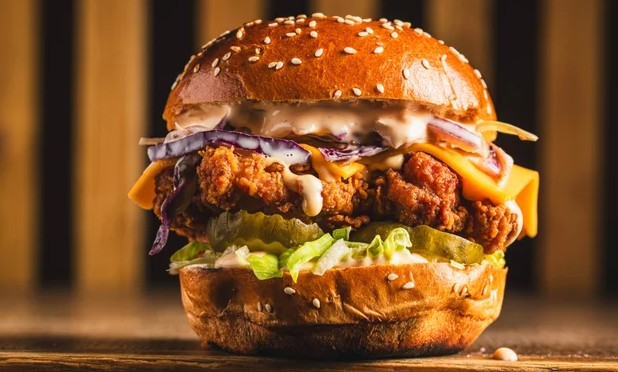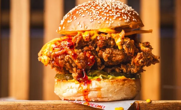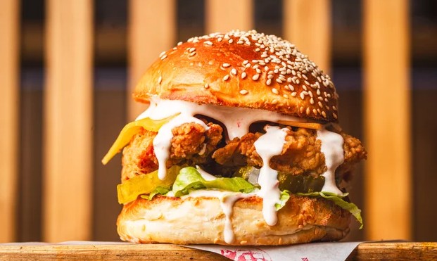 Buttermilk crispy thigh, lettuce, cheese, pickle, hot honey drizzle and house chilli mayo.
