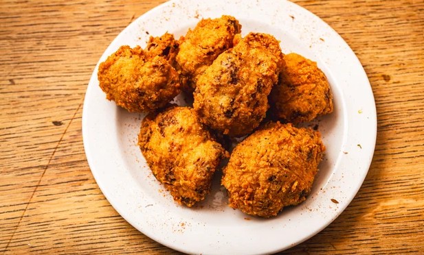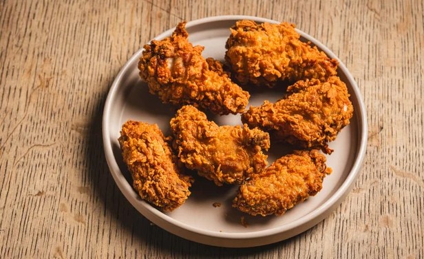 Crispy wings tossed in homemade buffalo sauce and hot honey. Topped with feta and aged stilton crumb. Garnished with chives and sesame seeds.